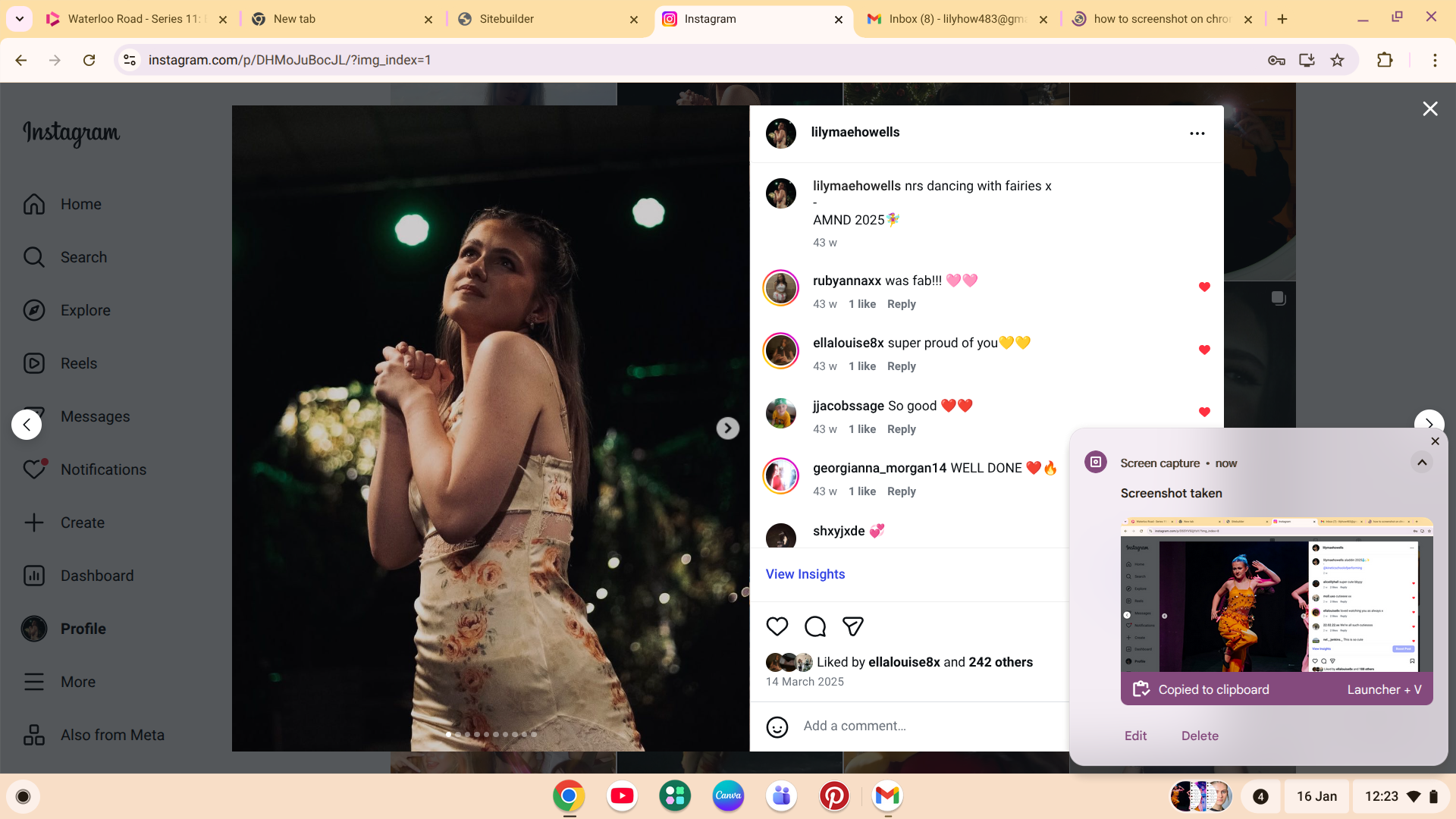 Lily particularly values the collaborative nature of theatre. She enjoys working as part of a creative team and believes that the rehearsal process is just as important as the final performance. Developing ideas together, supporting other performers and building something collectively is one of the parts of theatre she finds most rewarding. Alongside performing, she also has experience assisting youth theatre both in rehearsal and backstage, helping younger performers feel supported and confident while maintaining a positive environment.